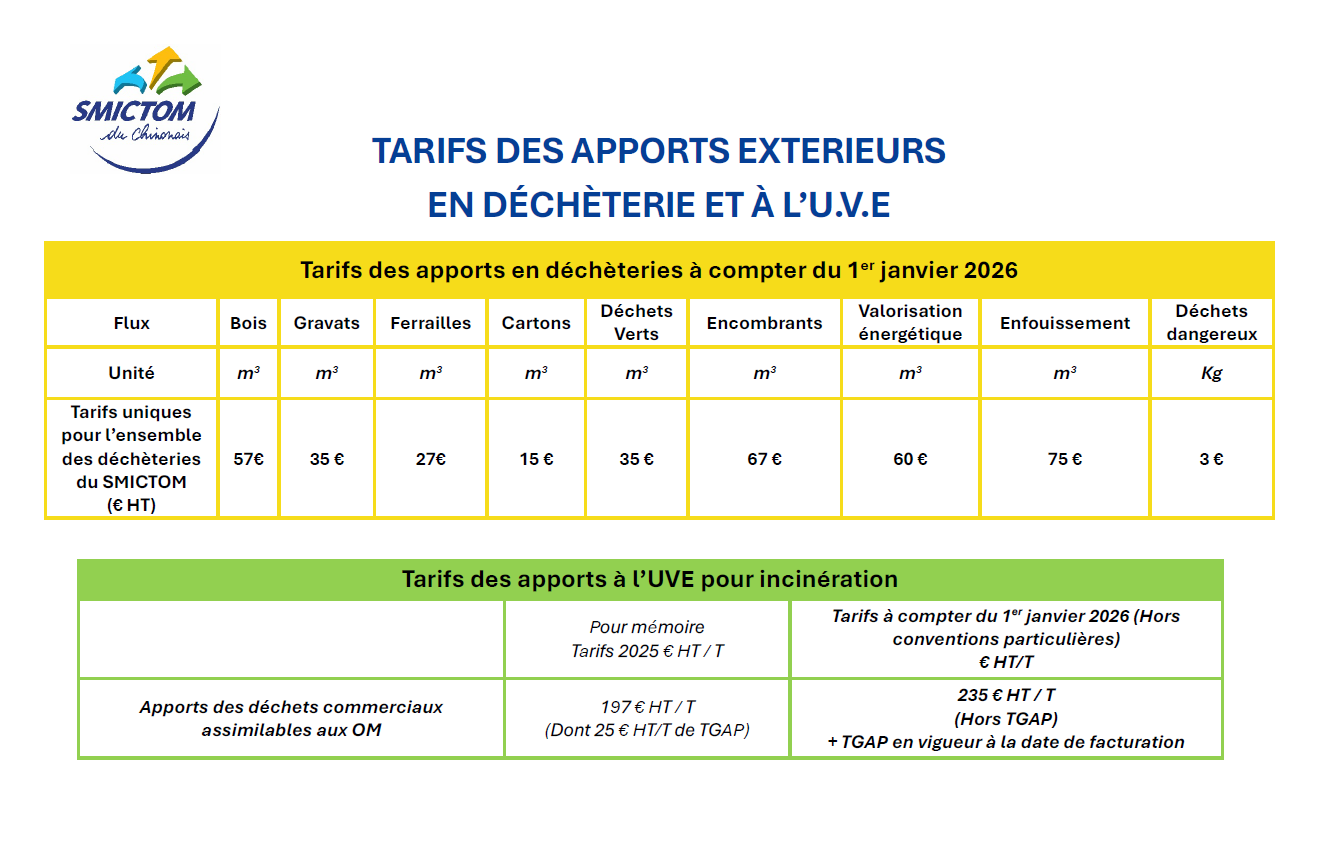 Les dépÎts en déchÚteries sont payants* et limités à 3m3/flux par jour pour les gravats, métaux, cartons, végétaux, encombrants et à bois et 10kg pour les déchets dangereux.